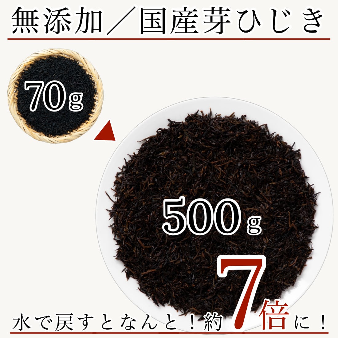 無添加 国産 天然 乾燥 芽ひじき 70g ひじき 天然ひじき 水で戻すと約7倍の500gに 保存料など 化学調味料不使用 無化調 サラダ 煮物 炊き込みご飯 水に浸して3-5分【A配送:常温】